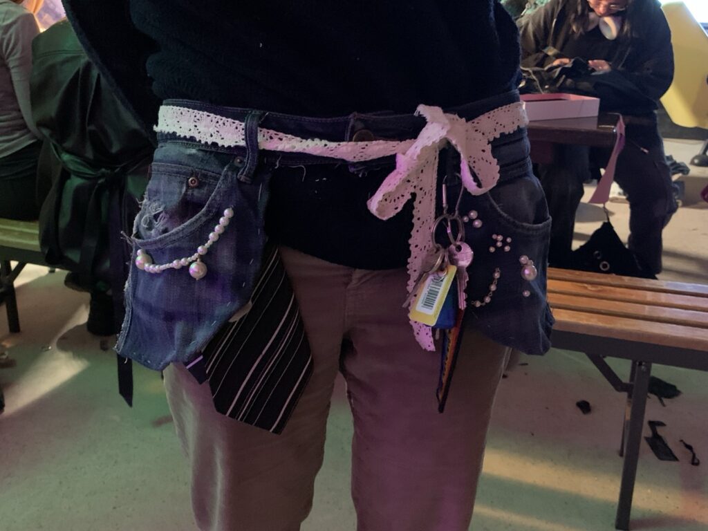 Hedendaagse kleding is vaak gegenderd en daarbij valt op dat ‘vrouwenkleding’, veel vaker dan ‘mannenkleding’, niet over zakken beschikt. Belachelijk vonden Susan Pinkster en ik. In de aanloop naar de internationale vrouwendag van gisteren gaven we een workshop waarin we beloofden de onafhankelijkheid en autonomie van ‘vrouwen’ terug te claimen met het maken van broekzakken op de superleuke Feminist Queer Market van Sickhouse.