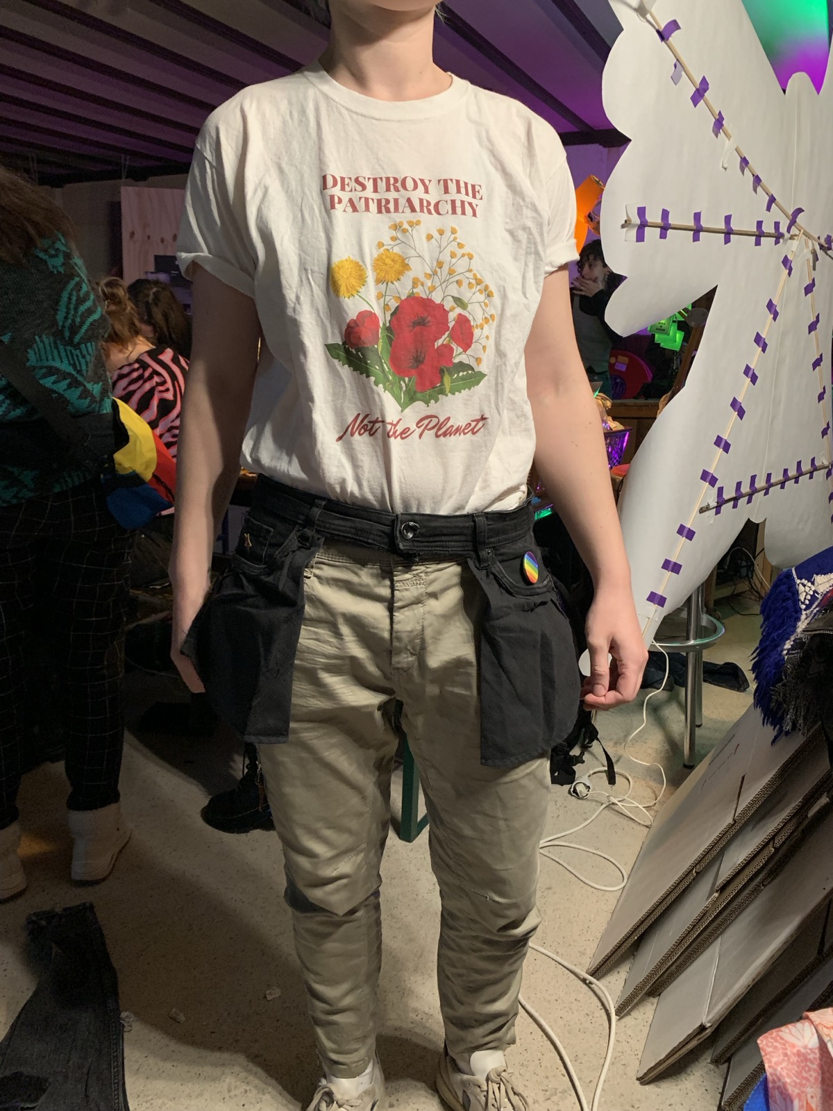Hedendaagse kleding is vaak gegenderd en daarbij valt op dat ‘vrouwenkleding’, veel vaker dan ‘mannenkleding’, niet over zakken beschikt. Belachelijk vonden Susan Pinkster en ik. In de aanloop naar de internationale vrouwendag van gisteren gaven we een workshop waarin we beloofden de onafhankelijkheid en autonomie van ‘vrouwen’ terug te claimen met het maken van broekzakken op de superleuke Feminist Queer Market van Sickhouse.