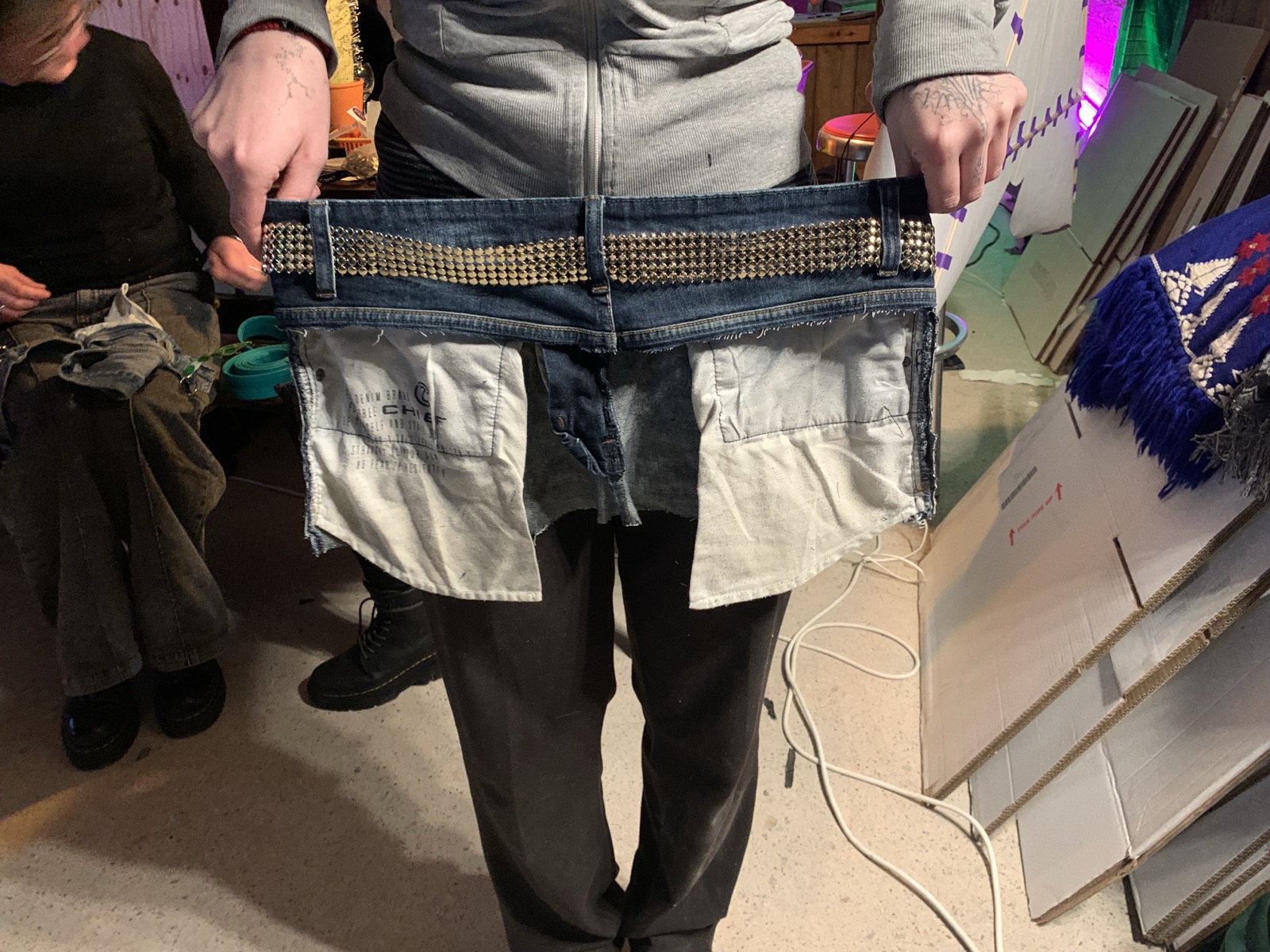 Behoud de band en de zakken en knip de rest van de broek eraf. De basis is nu klaar! Natuurlijk kun je nog vanalles toevoegen naar wens.